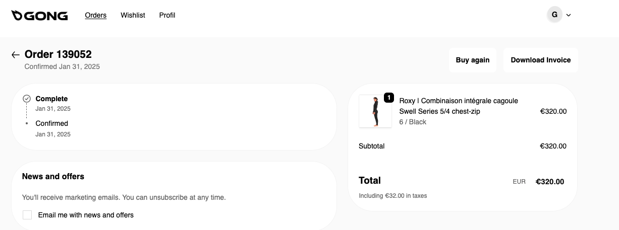 You will see a full summary of your order, including the list of products, prices, quantities, and delivery information.Download the invoice